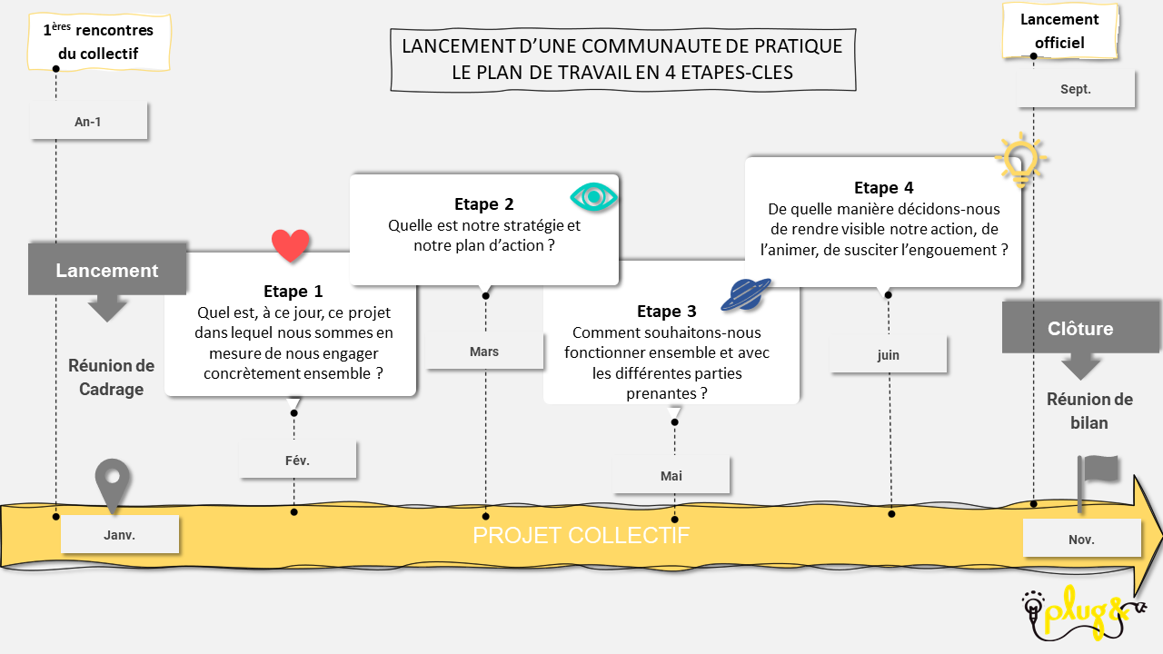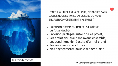 💡 Son principal enjeu est de favoriser la mise en commun et en partage du projet. Il permet de se projeter collectivement dans les changements à déployer et de s'entendre sur les conditions de réussite à instaurer pour y parvenir.