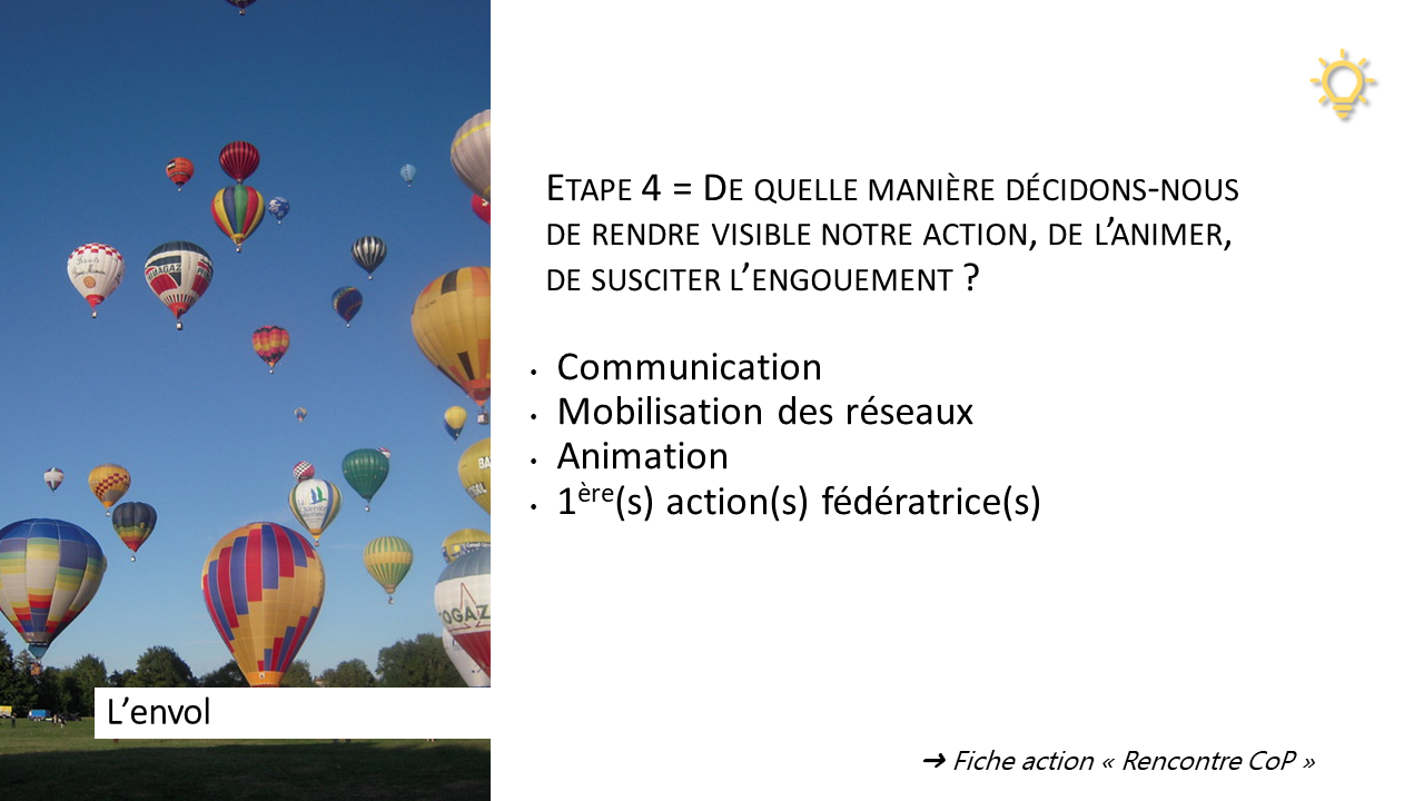 💡 Dédiés à un objectif concret de réalisation, à un défi à relever ou à une problématique à traiter, ces ateliers proposent au groupe réuni des activités structurées qui doivent aboutir à une co-construction formalisée et collectivement validée. Ils reposent sur des principes de créativité, de coopération, de plaisir de faire ensemble et du partage des connaissances pour formuler les meilleures propositions collectives. Des ateliers "Vision du projet", "feuille de route", "pilotage / la gouvernance partagé.e", "stratégie de communication", "présentation engageante du projet aux parties prenantes" peuvent donner forme à une "boussole" pour garder le cap, un plan d'action stratégique et opérationnel, un modèle de pilotage...