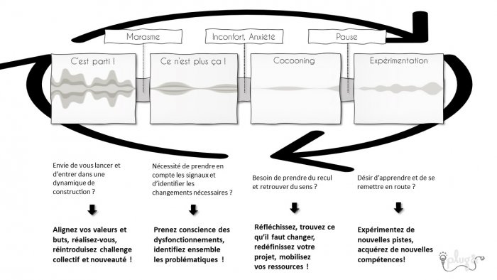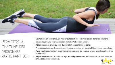 Le projet participatif & coopératif est une mise en mouvement vers une réalisation collective, une dynamique qui s’ancre dans les habitudes déjà en place et qui tend à les faire évoluer vers plus d’implication, de co-construction et de co-responsabilité.